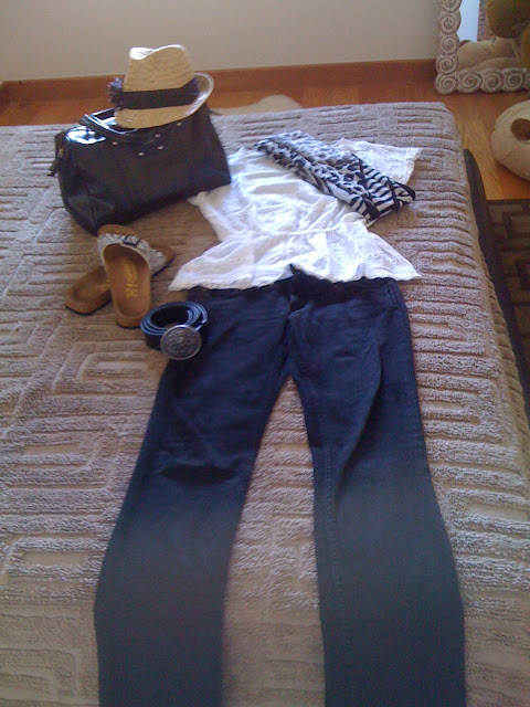 | Pantalonas Bershka Top Intimissimi Cinto Zara Chapéu Primark Socas Zilian Relógio Eletta Vilamoura Pulseiras Pandora e Pedra Dura Colar Pedra Dura Anéis Linha Aérea e CK |